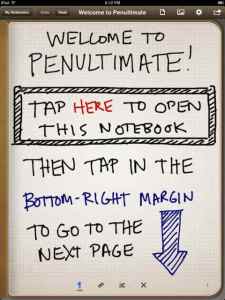 Penultimate has a Zen-like simplicity and elegance. The user documentation is just a few pages. (Penultimate pages — see the screenshots here.) Within a few minutes, I was zipping around and doodling with ease. It’s easy to know your way all around an app when there aren’t that many options to remember. It took a few tries before I got the hang of how it handled notebooks (collections of drawings), but it wasn’t all that hard. And it’s only 99¢.