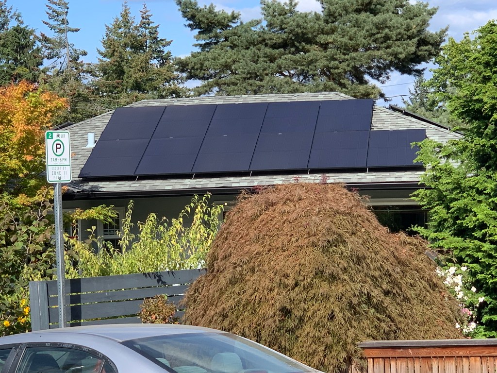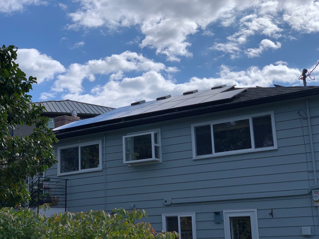 Here’s the panel layout. I went with the maximum panel density that our roof would support, given local building codes. (Some localities, Seattle included, regulate the maximum roof percentage that may be covered by solar panels, minimum roof edge clearances, etc.)