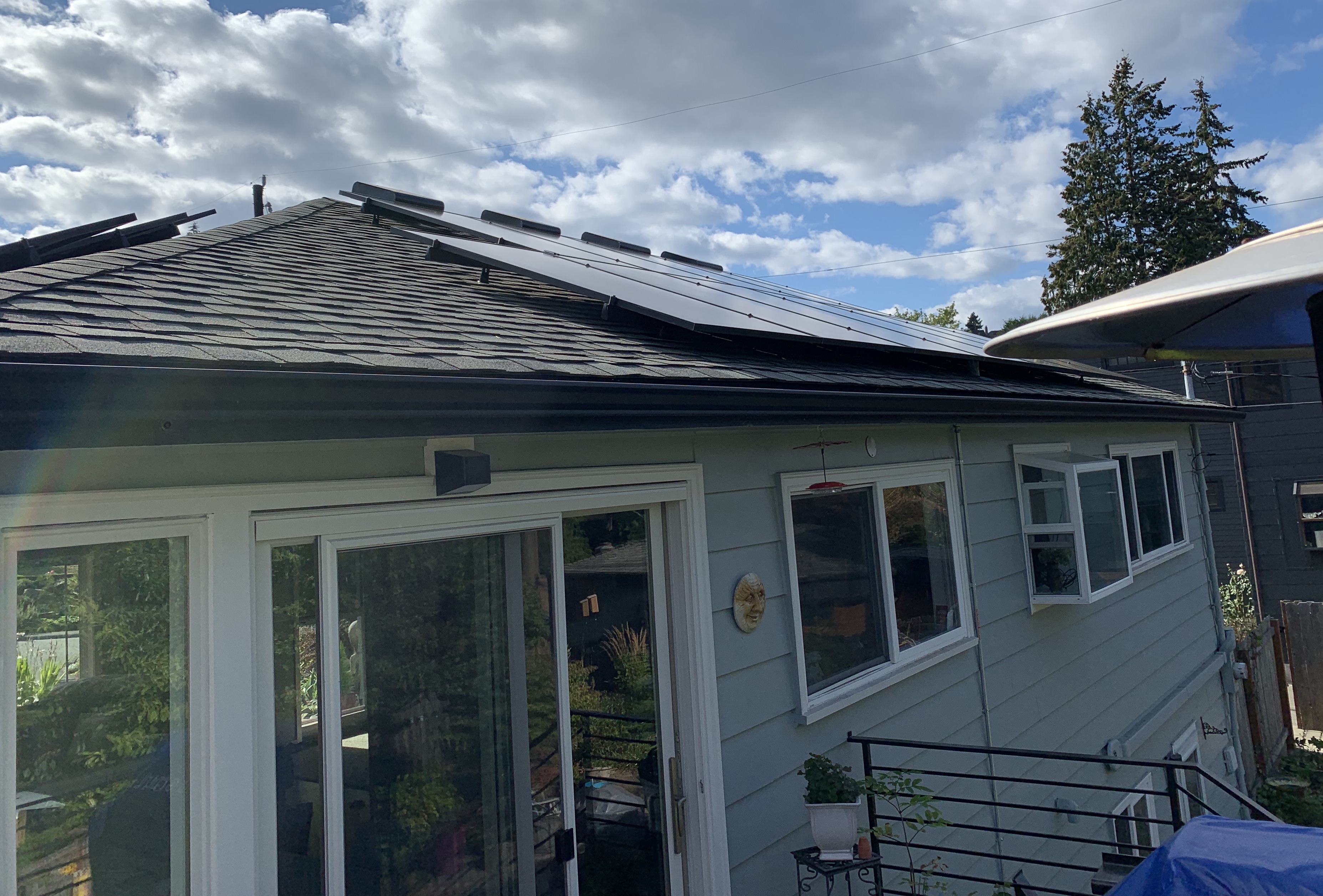 Here’s the panel layout. I went with the maximum panel density that our roof would support, given local building codes. (Some localities, Seattle included, regulate the maximum roof percentage that may be covered by solar panels, minimum roof edge clearances, etc.)