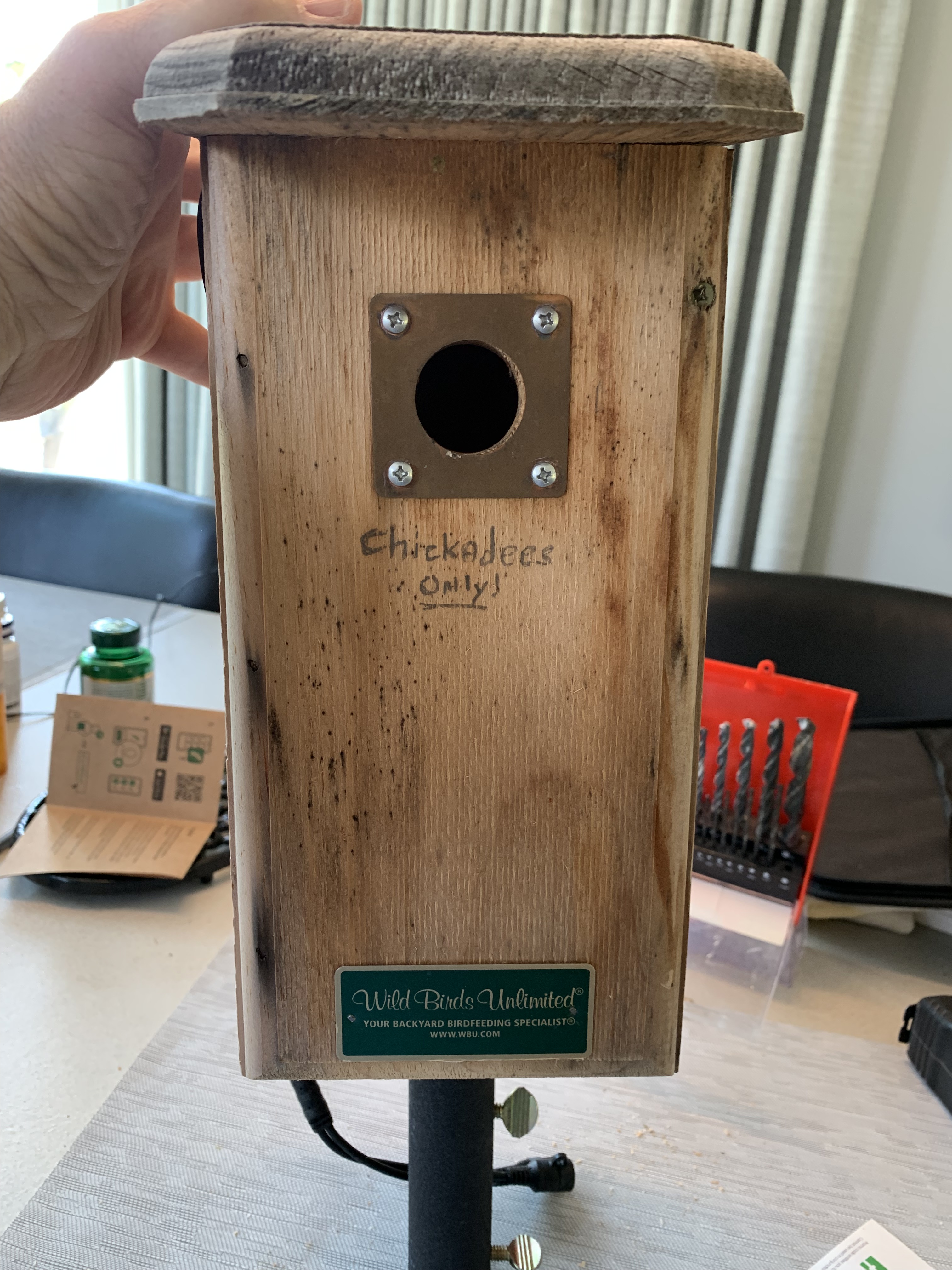 We have four nesting boxes in our backyard. We see birds flying in and out, and it’s fun to see them carrying twigs and fluff into the boxes. But being there when the babies leave is a matter of lucky timing. So we want to be able to see the activity inside the boxes.